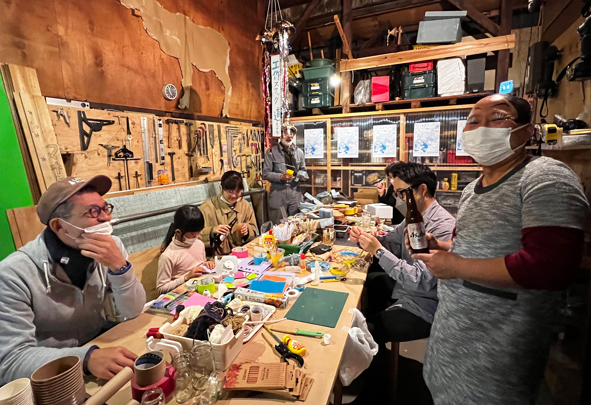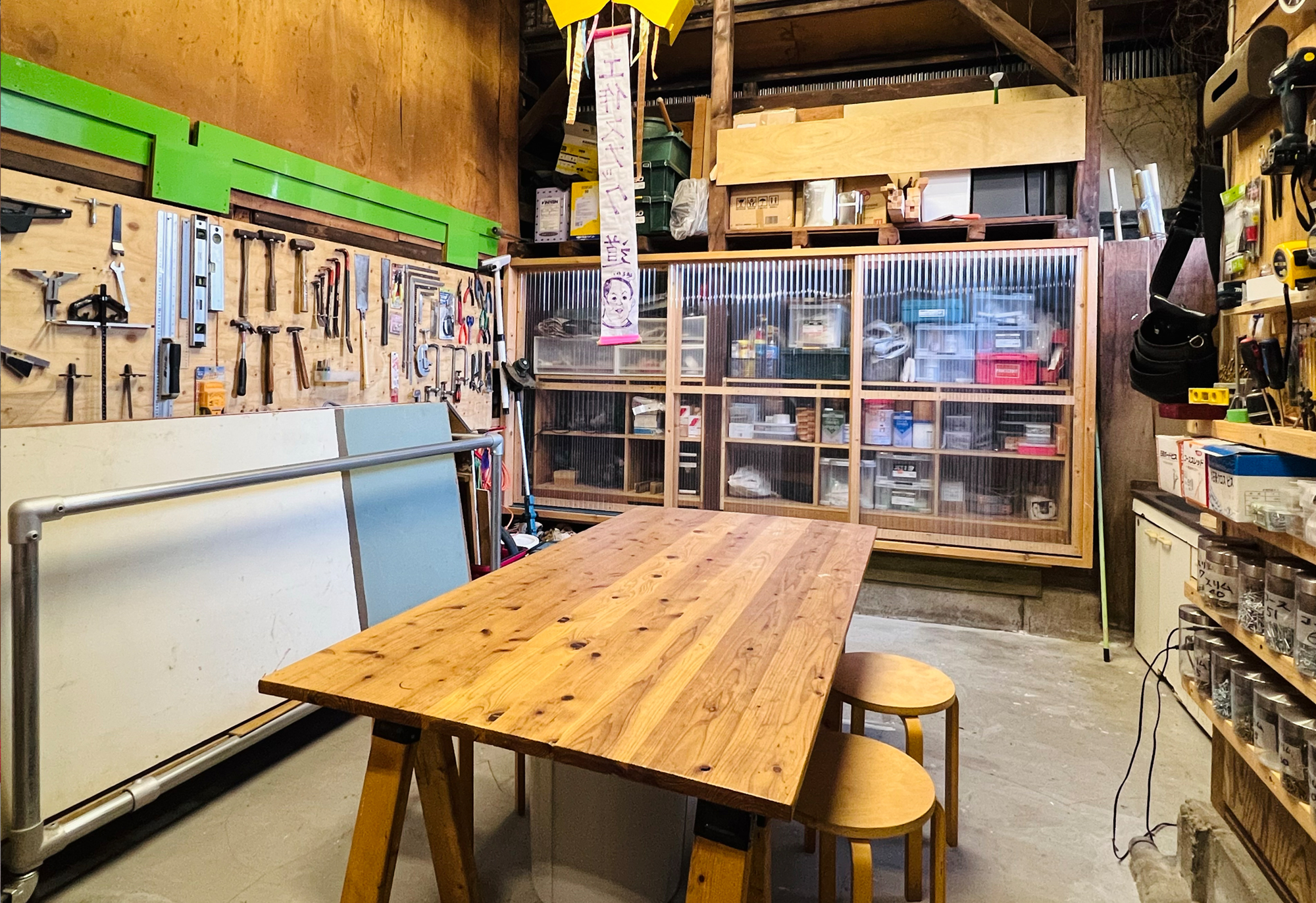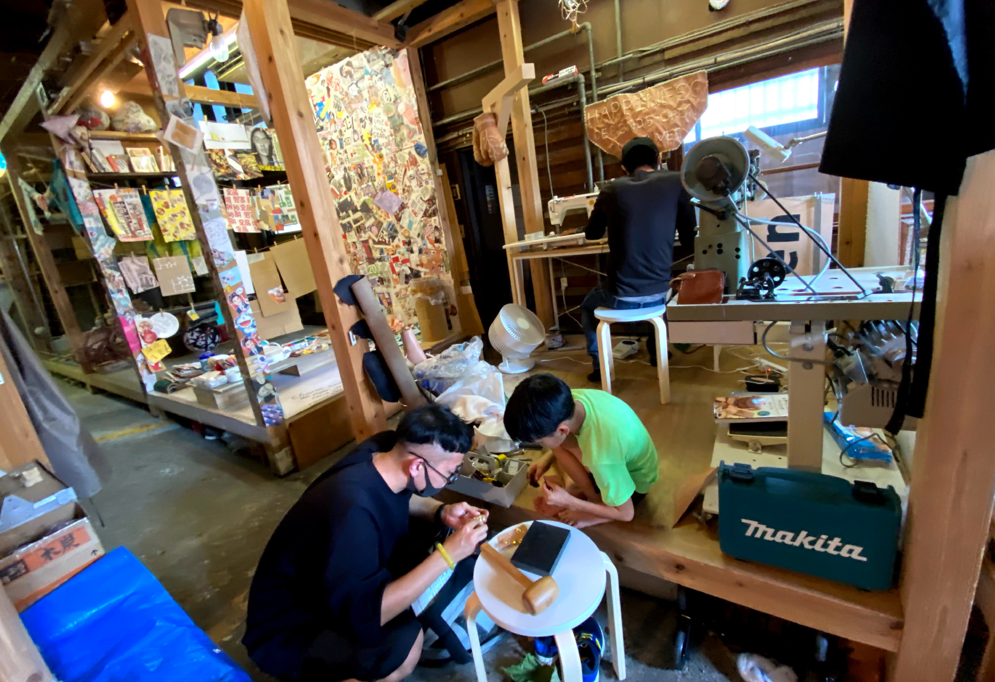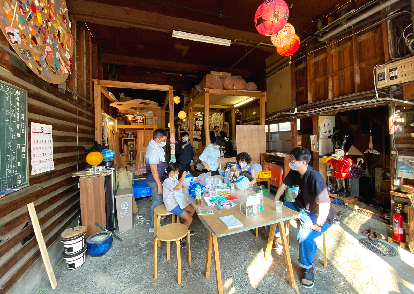作品制作や、お店を開いたり。広い空間が必要な作業には工作スペースを使えます。