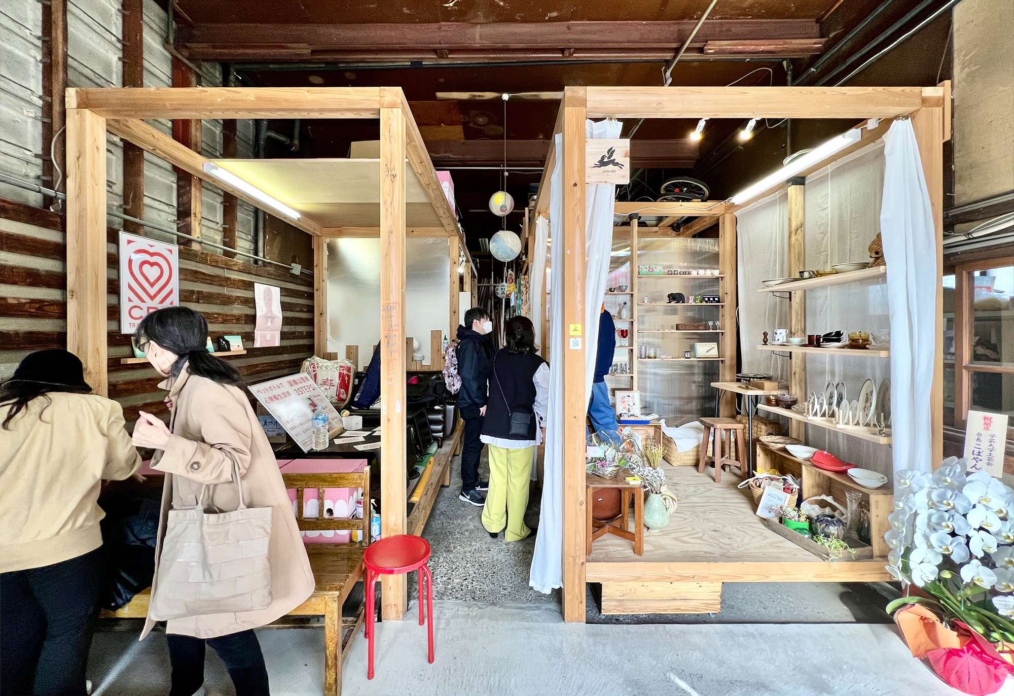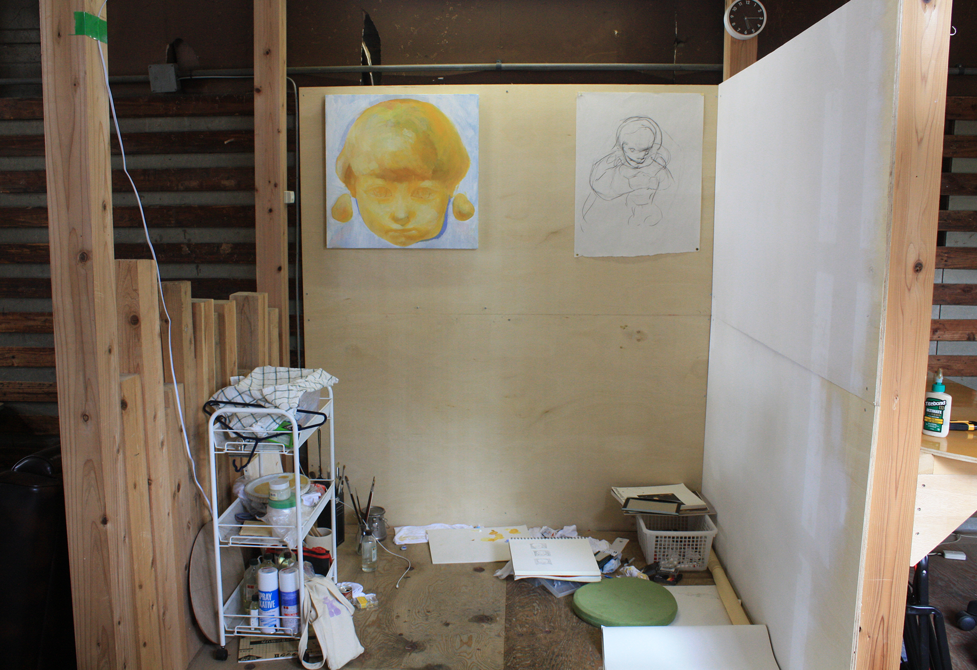 くすのき荘1階の2畳程度に区切られたアトリエスペース。家ではできない作業がある人、自分だけの空間を持ちたい人向けのアトリエ・作業スペース。